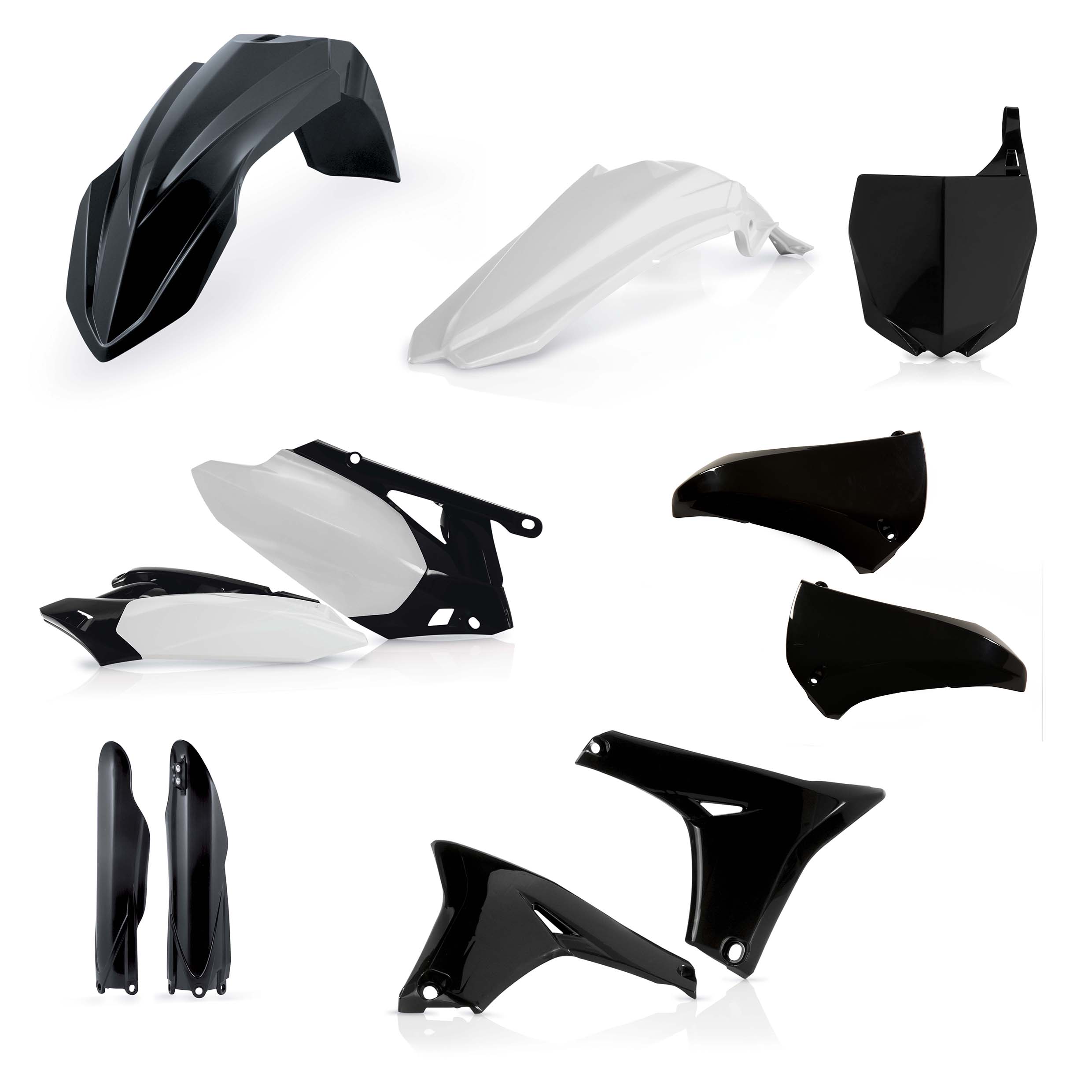 Kit plastic complet, ce include: aripa fata, aripa spate, prize de aer radiator, carcasa furca inferioara, panouri laterale, placuta numar fata