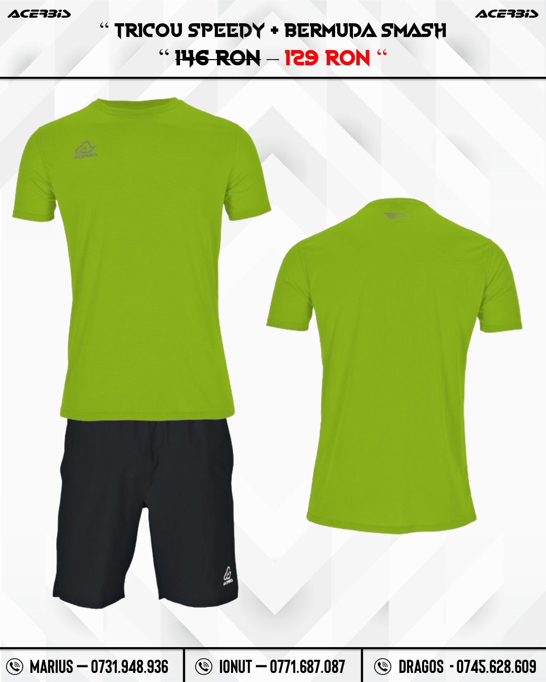 Exemplu : Tricou Rosu ( S ) , Short Negru ( M ) , Jambiere Galbene ( L ) , Bluza Verde ( XL ) , Pantaloni Negru ( 2XL ) .